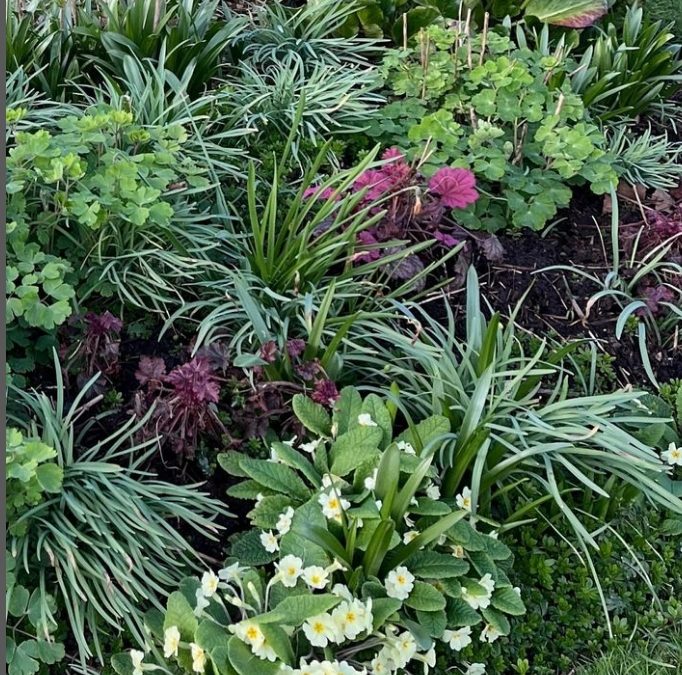 Another favourite spring bed…love the various colours & shapes of green leaves, setting off the magenta heuchera & soon to open bergenia flowers (great early nectar source for bees & hoverflies)…lifts the spirits on another rainy day! #gardendesign #wildlifegarden #beefriendly