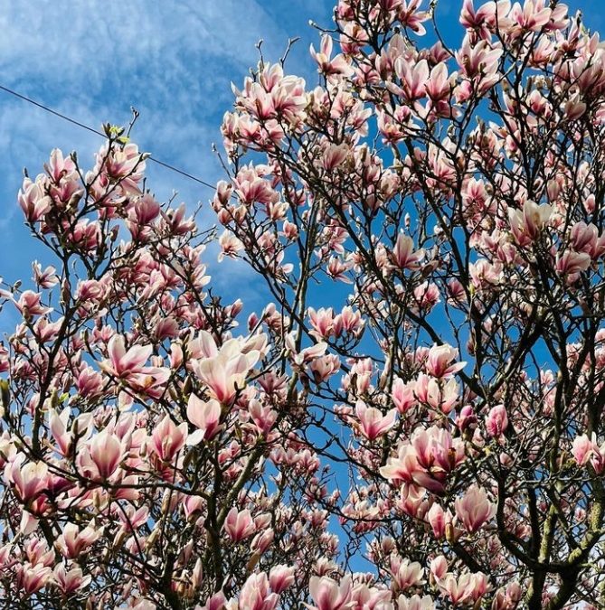 The beauty of spring…candy-floss pink magnolia blossom against a bright blue sky…
