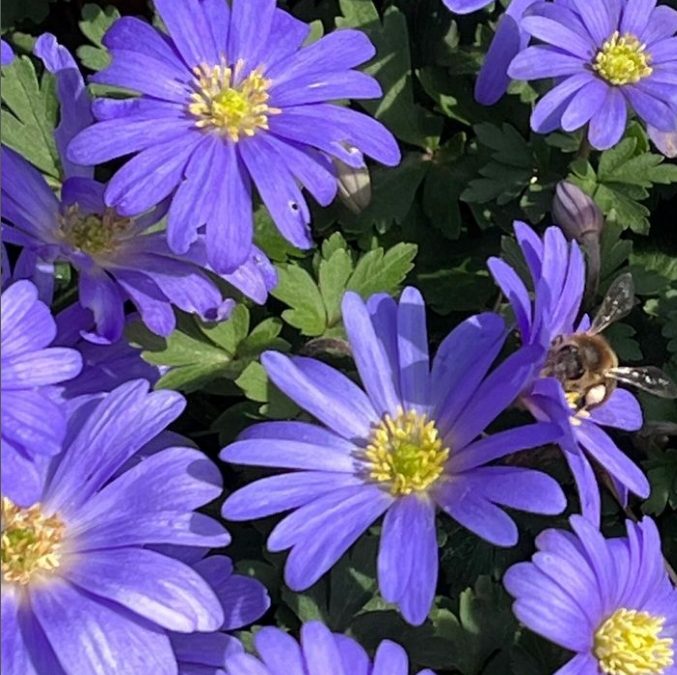 A joy today watching a honeybee forage on our anemones, one of the lovely harbingers of springtime #wildlifegarden #gardendesign